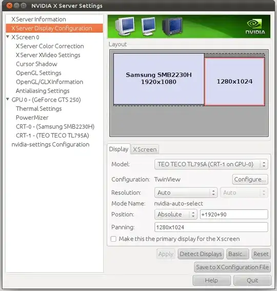 I'm using two monitors of different brands and resolutions with NVIDIA TwinView, which works well enough, but one thing that's getting to me is how the mouse can move off the edge of the visible screen space below the left-hand screen and above the right-hand screen (see screenshot).