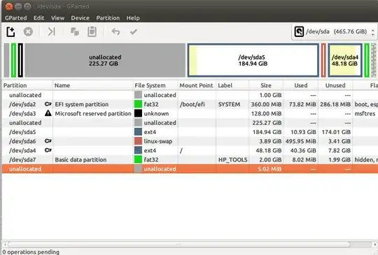 3Possible duplicate of How to resize partitions? From the second answer: In order to expand the ... [48GiB sda4] ... partition, you must have free space in front of or after it. – karel Jan 18 '17 at 13:35