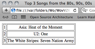 | (tr (td "1") (td "2") (td "3") (td "4")) |