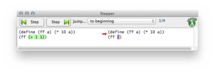 (if (= x 0) 0 (/ 1 x)) == ; because x stands for 2 (if (= 2 0) 0 (/ 1 2)) == ; 2 is not equal to 0, (= 2 0) is #false (if #false 0 (/ 1 x)) (/ 1 2) == ; normalize this to its decimal representation 0.5