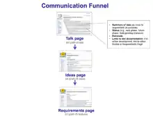 This page aims to track specific suggestions from the Wikipedia community for improving the Article Feedback Tool through its upcoming Version 5 (AFT V5). Our goal is to create a "communication funnel" that starts with community feedback from the AFT V5 Talk page and the Bugzilla Bugs list, then gets processed, distilled and prioritized on this Ideas page, and finally turns the most practical ideas into features on our Feature requirements page, which our developers will implement in phase 1 and 1.5 (separate requirements page will be created for phases 2 and beyond). See our AFT V5 project page for more info about our phased development plan.