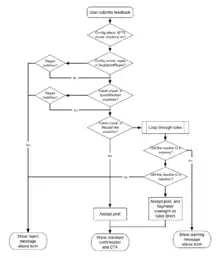 This proposed call to action would invite anonymous users ("anons") who post comments to enter their email address, so we can notify them if their comment is used. (Note that this idea would conflict with another proposal to require anonymous users to sign up to leave comments, as outlined above). In July 2012, a first prototype was created to illustrate an possible workflow leading to this CTA (click through all the options to see it at the end of the process). This approach is intended to give unregistered users an invitation to register if they are interested in tracking their feedback after they posted it.