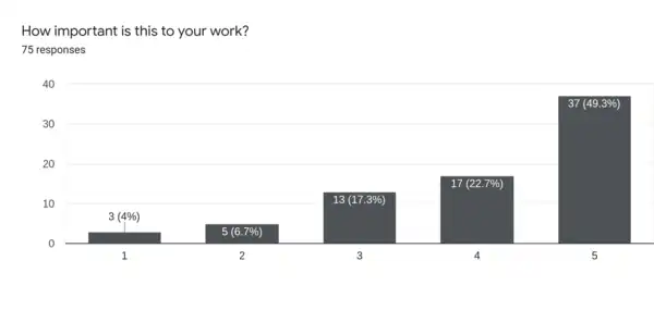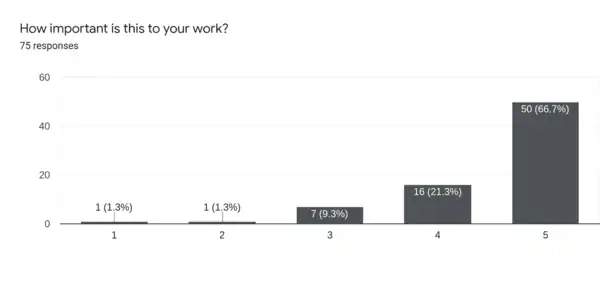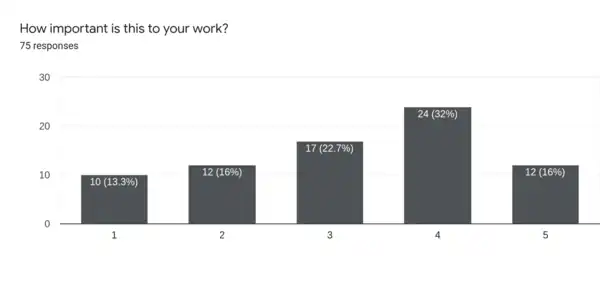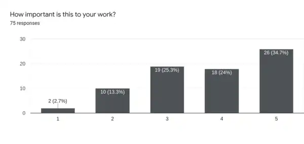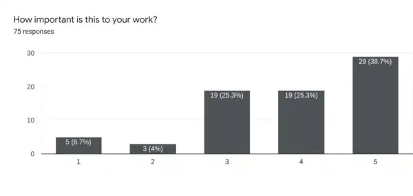 Code review standards: Respondents identified both a “bikeshed culture” and variation in review standards. Automated tooling has helped the later (eg: phpcs) but there is a desire for more explicit guiding principles for all reviews. There was a callout of appreciation for the Code Review Working Group.