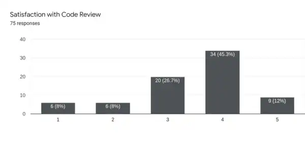 - Gerrit had a much higher variability in overall satisfaction ranging from “burn it down/move away from it now” to “I love it/please never move away.” Of those who voice concerns with Gerrit the primary motivation tended to be familiarity with pull/merge requests (vs patchsets).