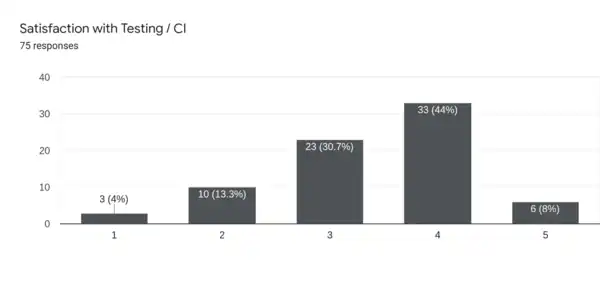 - Most requested features were improved ability to run tests, more documentation, more standardization, and access to production-like content when testing.