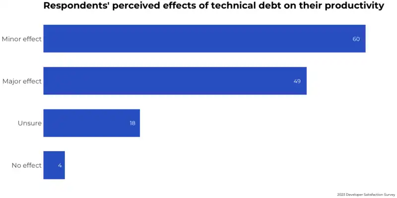 - The majority of respondents (83%) said technical debt affected their productivity