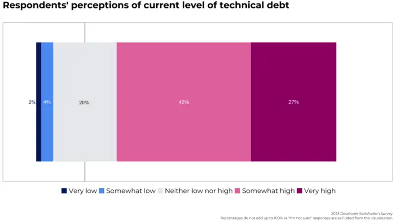 - The majority (69%) of respondents perceived the technical debt level as high