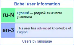 resources/ext.babel.css. You can change the style as desired by overriding them in the pageMediaWiki:Common.css. - If the CLDR extension is found language names are taken from that (where translations are unavailable), otherwise built in MediaWiki language names and English defaults are used.