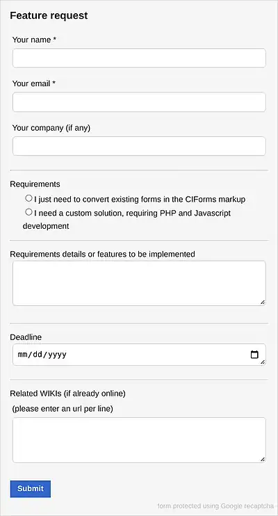 CIForms is a complete solution to quickly create input forms to immediately retrieve data from visitors, and they include a wide range of features, like native validation, nested sections, multi-step, multiple choice questions with arbitrary inputs within lines and supporting all standard list style types, cloze tests, Google recaptcha, select & combobox, textarea with maxlength, data access (used to restrict the access to forms' submissions), and much more!