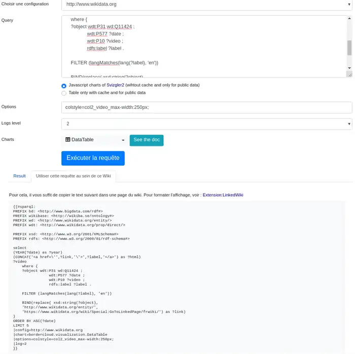 But only, the "SPARQL editor" helps you to build also a visualization to insert it in your wiki.