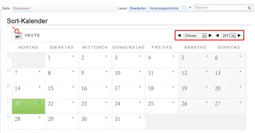 You can navigate the calendar, using the panel at the top. The "HEUTE" button will always take you back to today's date: