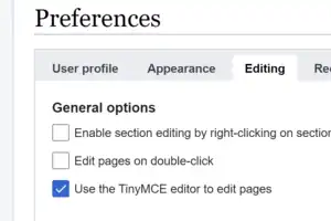 TinyMCE is a MediaWiki extension that lets users edit wiki pages using version 5 of the popular open source JavaScript-based WYSIWYG editor TinyMCE created by Ephox corp. The editor can be added to the standard edit page, to forms defined by the Page Forms extension, and to regular pages in view mode.