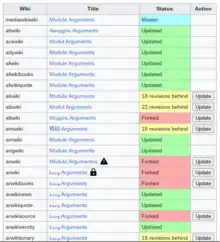 Once a module is able to be copied unchanged to other wikis, the Synchronizer tool can be used to keep it synced across all Wikimedia wikis.