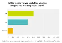 - Focusing on global reader responses, about 65% of readers found Media Viewer useful for viewing images, based on 7,582 readers responses in 7 languages, over a 12-week period, from 14 April to 7 July, 2014 (see linked spreadsheet and thumbnail to the right).