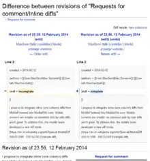 - I'm not good enough for commenting the proposal, but thanks a bunch for working on diffs! They're a crucial part of MediaWiki and they're so completely neglected. --Nemo 23:27, 13 February 2014 (UTC)