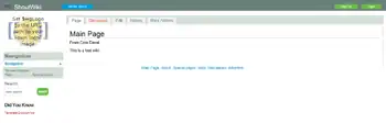 Registered user viewing a page with the main navigation menu (MediaWiki:Sidebar) active