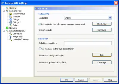 Click the 'edit' button for 'Subversion configuration file' in the settings dialog: