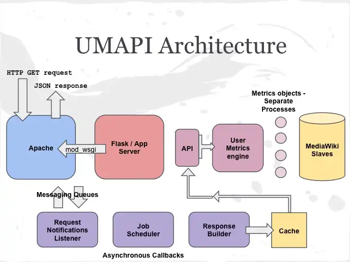 UserMetrics is the name of a platform developed by the Wikimedia Foundation to measure user activity based on a set of standardized metrics. Using this platform, a set of key metrics can be selected and applied to a cohort of users to measure their overall productivity. The platform is designed for extensibility (creating new metrics, modifying metric parameters) and to support various types of cohort analysis and program evaluation in a user-friendly way. It accepts requests via a RESTful API and returns responses in JSON format.