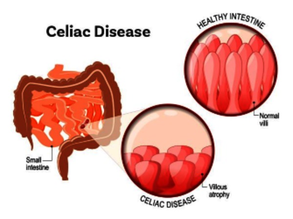Celiac disease is associated with an inappropriate immune response to a segment of the gluten protein called gliadin. This inappropriate activation of the immune system causes inflammation that damages the body's organs and tissues and leads to the signs and symptoms of celiac disease.
