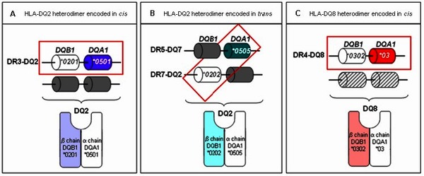 Almost all people with celiac disease have specific variants of the HLA-DQA1 and HLA-DQB1 genes, which seem to increase the risk of an inappropriate immune response to gliadin. However, these variants are also found in 30 percent of the general population, and only 3 percent of individuals with the gene variants develop celiac disease.