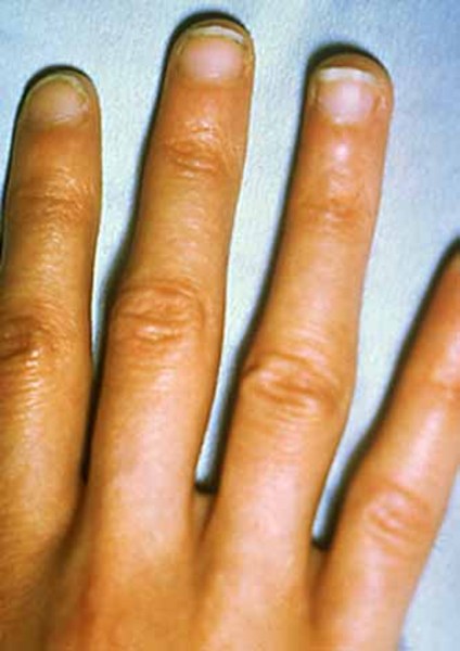 The features of Cohen syndrome vary widely among affected individuals. Additional signs and symptoms in some individuals with this disorder include low levels of white blood cells (neutropenia), overly friendly behavior, and obesity that develops in late childhood or adolescence. When obesity is present, it typically occurs around the torso, with the arms and legs remaining slender (called truncal obesity). Individuals with Cohen syndrome may also have narrow hands and feet, and slender fingers.