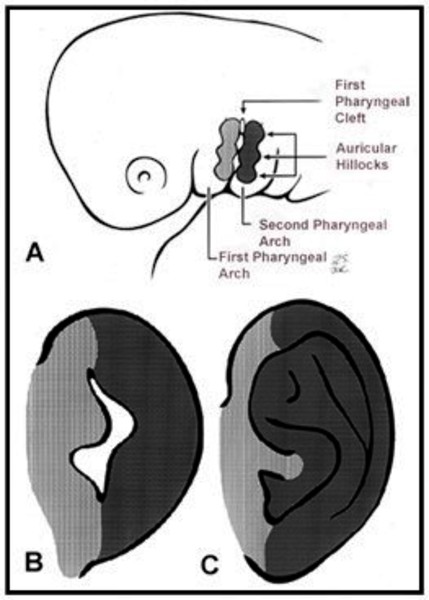 - Johnson JM, Moonis G, Green GE, Carmody R, Burbank HN. Syndromes of the first and second branchial arches, part 1: embryology and characteristic defects. AJNR Am J Neuroradiol. 2011 Jan;32(1):14-9. doi: 10.3174/ajnr.A2072. Epub 2010 Mar 18. Citation on PubMed