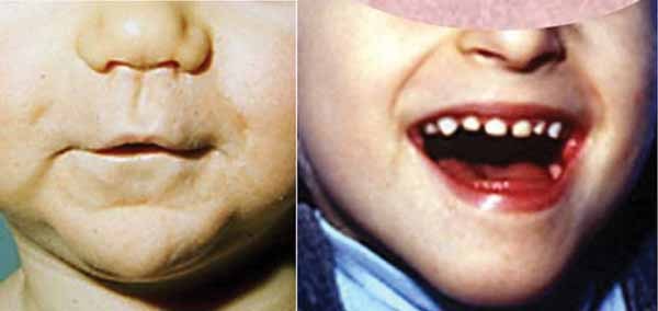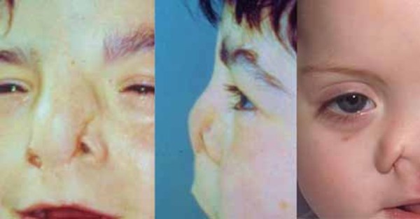 People with focal dermal hypoplasia may have distinctive facial features. Affected individuals often have a pointed chin, small ears, notched nostrils, and a slight difference in the size and shape of the right and left sides of the face (facial asymmetry). These facial characteristics are typically very subtle. An opening in the lip (cleft lip) with or without an opening in the roof of the mouth (cleft palate) may also be present.