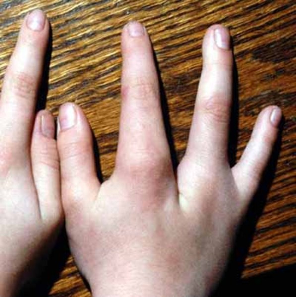 Many individuals with focal dermal hypoplasia have hand and foot abnormalities, including missing fingers or toes (oligodactyly), webbed or fused fingers or toes (syndactyly), and a deep split in the hands or feet with missing fingers or toes and fusion of the remaining digits (ectrodactyly). X-rays can show streaks of altered bone density, called osteopathia striata, that do not cause any symptoms in people with focal dermal hypoplasia.