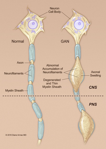 - Opal P. GAN-Related Neurodegeneration. 2003 Jan 9 [updated 2021 Oct 14]. In: Adam MP, Feldman J, Mirzaa GM, Pagon RA, Wallace SE, Bean LJH, Gripp KW, Amemiya A, editors. GeneReviews(R) [Internet]. Seattle (WA): University of Washington, Seattle; 1993-2024. Available from http://www.ncbi.nlm.nih.gov/books/NBK1136/ Citation on PubMed