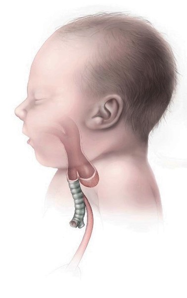). In esophageal atresia, the upper esophagus does not connect to the lower esophagus and stomach. Most babies born with esophageal atresia (EA) also have a tracheoesophageal fistula (TEF), in which the esophagus and the trachea are abnormally connected, allowing fluids from the esophagus to get into the airways and interfere with breathing. Esophageal atresia/tracheoesophageal fistula (EA/TEF) is a life-threatening condition; without treatment, it prevents normal feeding and can cause lung damage from repeated exposure to esophageal fluids.
