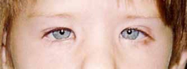 Most people with MED13L syndrome have unusual facial features that consist of a depressed nasal bridge, a bulbous nasal tip, straight eyebrows, outside corners of the eyes that point upward (upslanting palpebral fissures), full cheeks, and an open mouth. Other facial features that sometimes occur are a pronounced double curve of the upper lip (Cupid's bow), and a deep space between the nose and upper lip (philtrum).