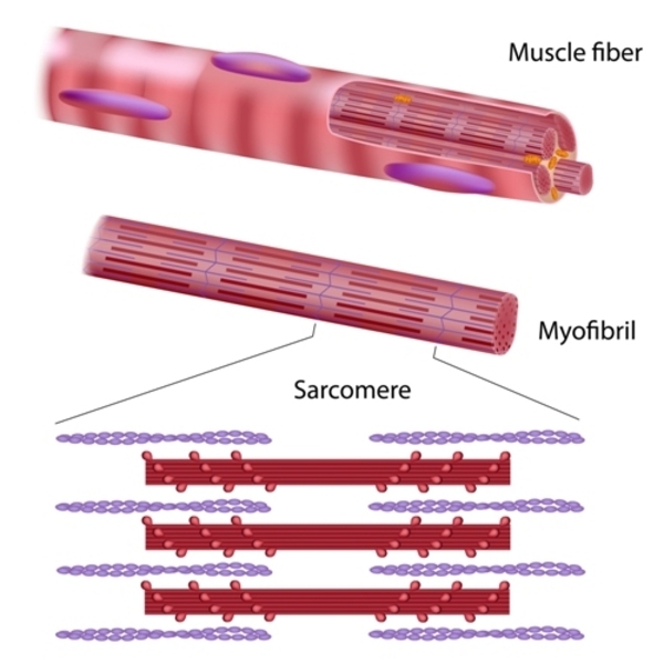 Mutations in several genes can cause myofibrillar myopathy. These genes provide instructions for making proteins that play important roles in muscle fibers. Within muscle fibers, these proteins are involved in the assembly of structures called sarcomeres. Sarcomeres are necessary for muscles to tense (contract). The proteins associated with myofibrillar myopathy are normally active on rod-like structures within the sarcomere called Z-discs. Z-discs link neighboring sarcomeres together to form myofibrils, the basic unit of muscle fibers. The linking of sarcomeres and formation of myofibrils provide strength for muscle fibers during repeated muscle contraction and relaxation.