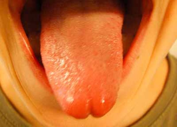 Abnormalities of the oral cavity that occur in many types of oral-facial-digital syndrome include a split (cleft) in the tongue, a tongue with an unusual lobed shape, and the growth of noncancerous tumors or nodules on the tongue. Affected individuals may also have extra, missing, or defective teeth. Another common feature is an opening in the roof of the mouth (a cleft palate). Some people with oral-facial-digital syndrome have bands of extra tissue (called hyperplastic frenula) that abnormally attach the lip to the gums.