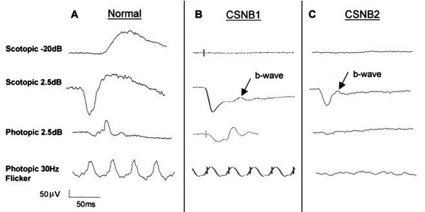 - Zeitz C, Robson AG, Audo I. Congenital stationary night blindness: an analysis and update of genotype-phenotype correlations and pathogenic mechanisms. Prog Retin Eye Res. 2015 Mar;45:58-110. doi: 10.1016/j.preteyeres.2014.09.001. Epub 2014 Oct 13. Citation on PubMed