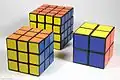 3 rubik's cubes with different sizes