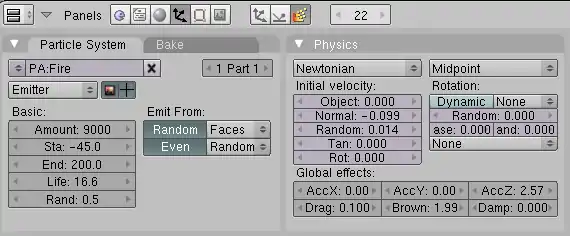 - Normal: -0.099 The particles are emitted slightly against the direction of the face normal. This leads to a bit wider fire at the base.