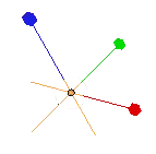 The manipulator appears in the middle of the selection. There are three kinds of manipulator as shown in the illustrations. It can be used to apply translation (position changes), rotation, and scaling (size changes) to objects. Its appearance changes according to which of these functions are enabled. You can click on the menu transformation buttons that appear when the manipulator is visible, to choose a single transformation, or shift-click to enable more than one simultaneously. You can toggle the visibility of the manipulator with CTRL + SPACE , or by clicking the menu button with the red, green and blue arrows.