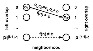 • the neighborhood is formed from the left overlap and the remaining right cell