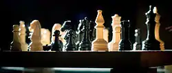 Chessmen in backlight. Note the translucency of the white chessmen.