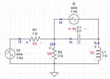 Given that the voltage source is defined by and the current source is defined by , find all other voltages, currents and check power.