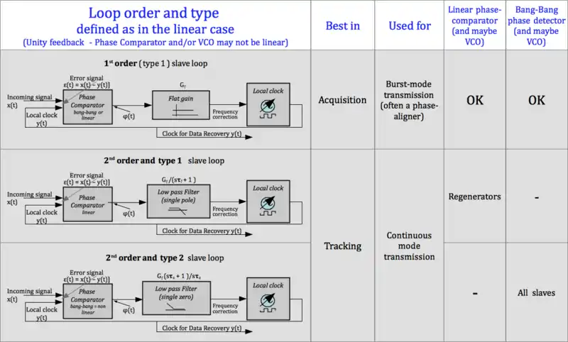 1. 1 . 1 linear or non-linear blocks; preferred when Es is zero by definition (= for phase aligners). Preferred when the acquisition time shall be minimum (burst-mode transmission). Furthermore, a good choice in many cases where no specific requirements suggest a 2nd order loop.