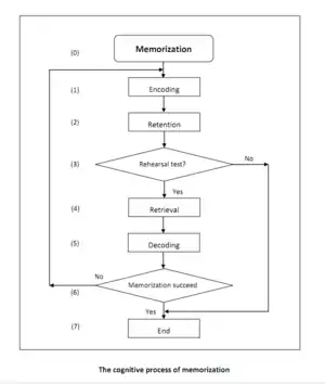 (1) Encoding process, which convert information to a form that can be stored in LTM; (2) Retention, this step stored the information in LTM; (3) Rehearsal test, this step checks if the memorization result in LTM needs to be rehearsed. (4) Retrieval process, which recalls the information from LTM; (5) Decoding process, this step is about information reconstruction; (6) Repetitive memory test, which tests if the memorization process was succeed or not by comparing the recovered concept with the original concept.