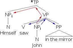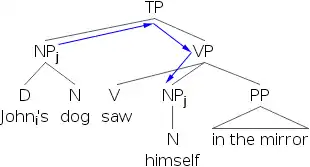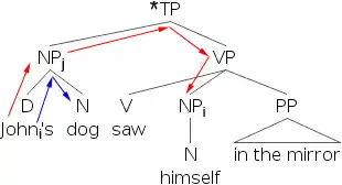 9) *[Johni’s dog]j saw himselfi in the mirror.