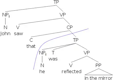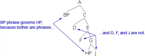 One general rule for drawing tree structures is that lines never cross. In other words, a constituent must be formed by adjacent items. In the advanced syntax tutorial we’ll explore how non-adjacent constituency is handled and why it arises.
