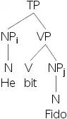 3) [The dog]i bit [the man]j.