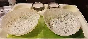 Appam, a fermented rice pancake, is a speciality of the South Indian coastal state of Kerala. It is especially popular among the Christian communities of that state. Appam are often served along with a coconut-flavoured vegetable stew. It is also very popular in Sri Lanka, where it is known as "appa" (or "hopper") and often served with an added egg.