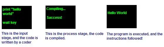 Well, here's how it works. First off, you compile or check syntax, then the code you entered passes through what's called machine language or assembly (its name changes depending on what its doing when it's compiling its assembler). Then it becomes pure binary (which is not human readable but meant for computers; they cannot understand anything other than 0s and 1s). Then it is sent back to the compiler where if the binary matches what's correct, it gets executed. If it doesn't, you get a syntax error and must debug. Now, don't quote me on that but that's basically what happens. So now you're ready to begin programming in DarkBASIC and will know what I talk about.