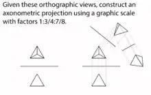 4. This new view should present an axonometric view in which the edges are at (<D) and (<E) relative to the transfer/construction lines.