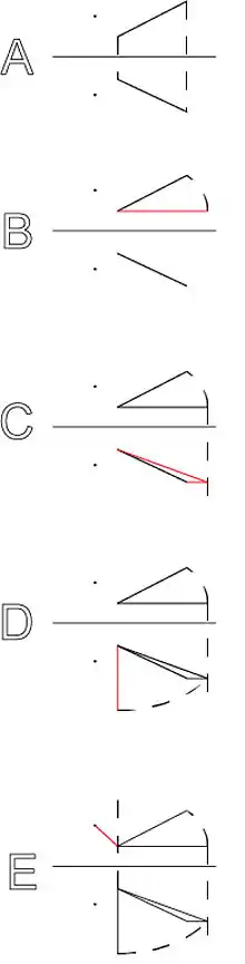- Step B ) Rotate this line in one of the views (of your choice, here the top view is used), so that the line is parallel to the folding line. Rotate the last point over as well. (See Rotating a Plane for further instructions).