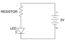 Due to LEDs being somewhat sensitive to over-voltage (or, too much power being fed in), we must also use a resistor to reduce the voltage supply at the LED anode. This will be explained.